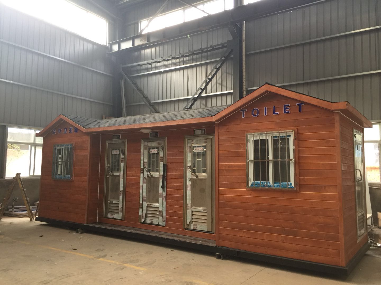 移動廁所簡介及制作方法:1、房體結構: 采用輕鋼龍骨結構,鋼材全部使用國家標準鍍鋅鋼材。根據房體的大小特選用國標方管(50-100)焊接而成。鍍鋅管厚度為2.8mm,方管經過徹底除銹后進行鍍鋅、防腐處理,處理后的結構使用壽命均在20年以上。這樣就會延長廁所使用壽命,使整座廁所的穩固性更強、更加結實耐用。2、墻體...