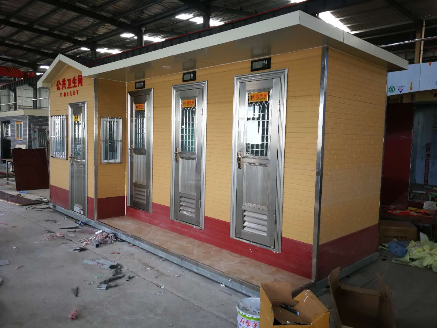 移動廁所簡介及制作方法:1、房體結構: 采用輕鋼龍骨結構,鋼材全部使用國家標準鍍鋅鋼材。根據房體的大小特選用國標方管(50-100)焊接而成。鍍鋅管厚度為2.8mm,方管經過徹底除銹后進行鍍鋅、防腐處理,處理后的結構使用壽命均在20年以上。這樣就會延長廁所使用壽命,使整座廁所的穩固性更強、更加結實耐用。2、墻體...